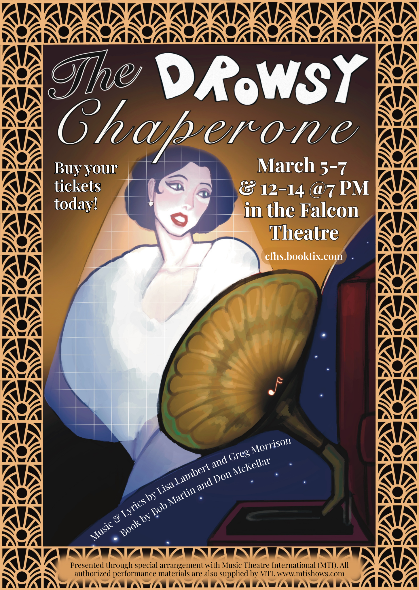 Get ready for an evening of madcap delight! Under the direction of Ms. Amy Byroad, CFHS Falcon Theatre brings to life The Drowsy Chaperone: A Musical within a Comedy!Winner of five Tony Awards, inc...